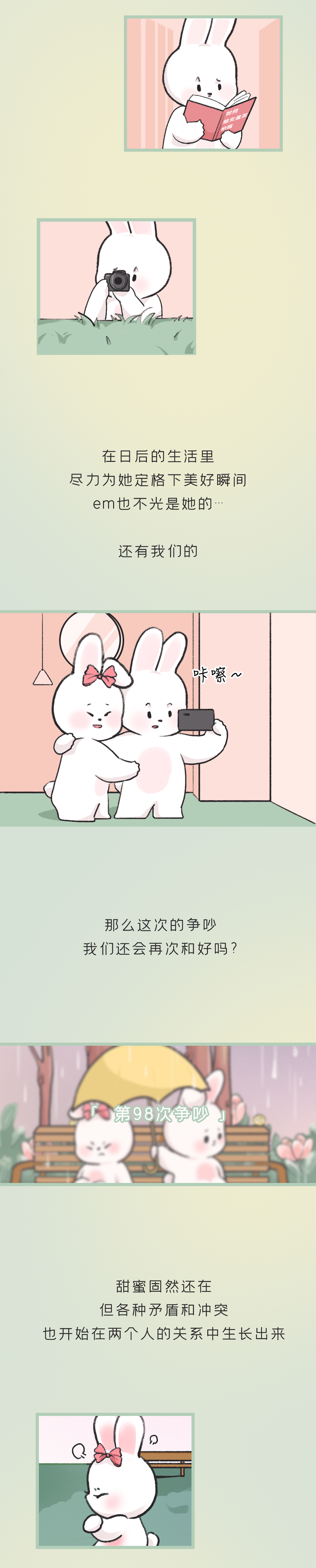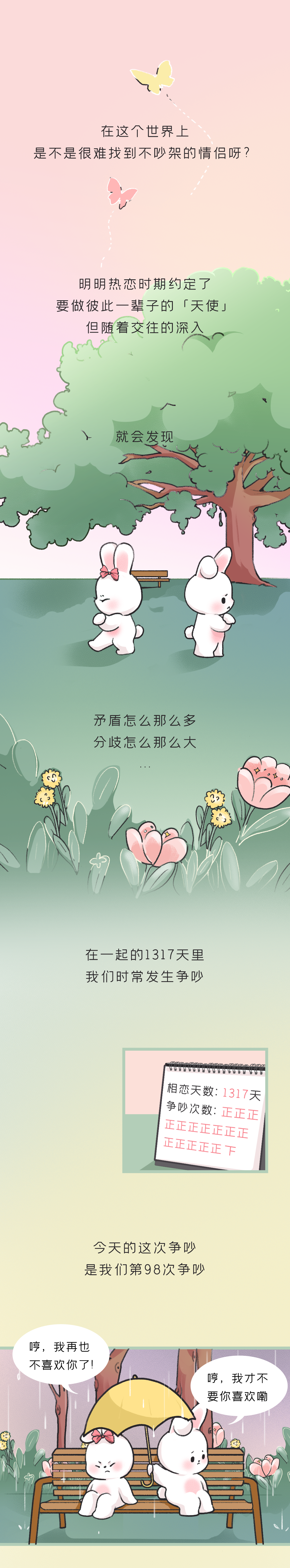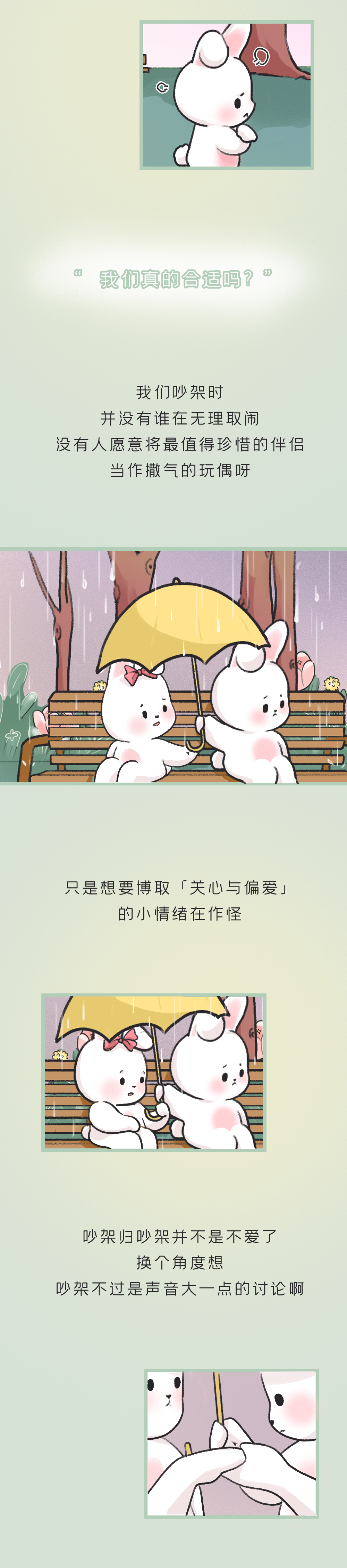 @001: 其实吵架不是重点 发现问题并且两个人是否愿意去为此调整、磨合才是两个人能不能继续在一起的关键 不如就借这篇漫画当作你俩之间的一次调和叭~希望你们都能和所爱之人越来越好❤