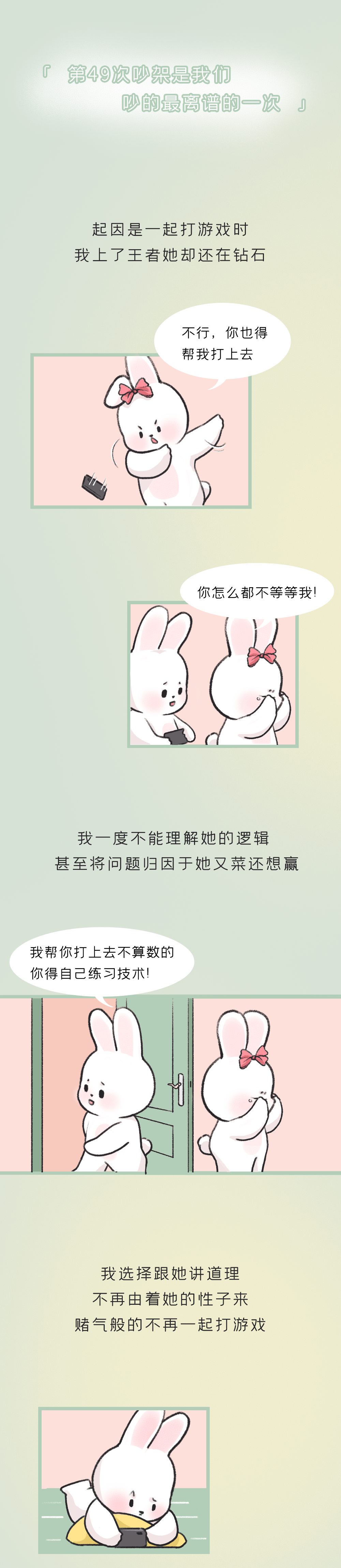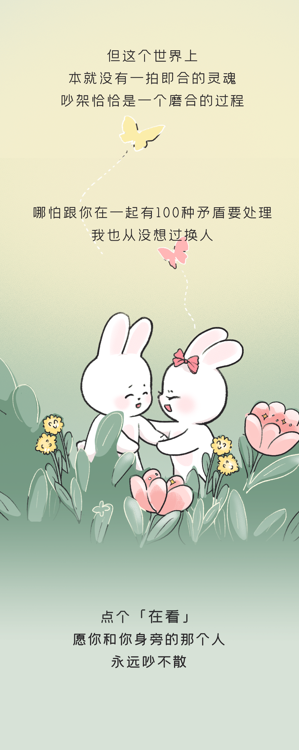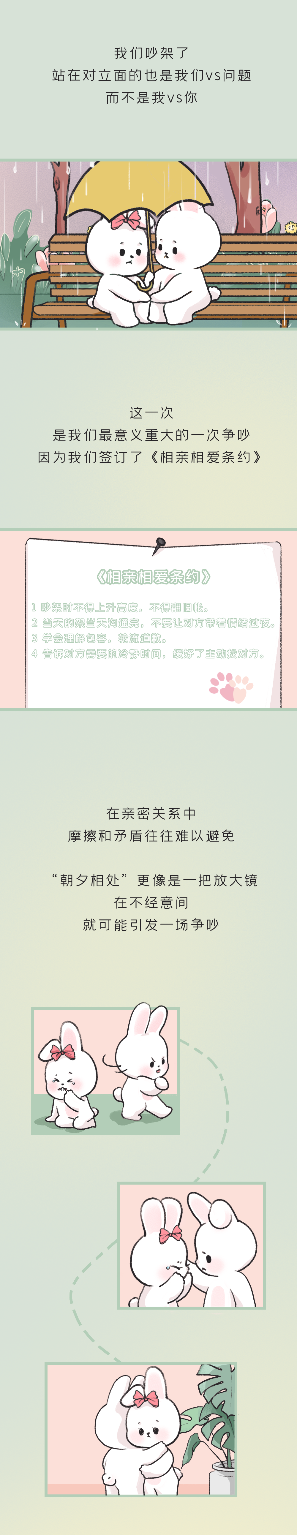 @001: 其实吵架不是重点 发现问题并且两个人是否愿意去为此调整、磨合才是两个人能不能继续在一起的关键 不如就借这篇漫画当作你俩之间的一次调和叭~希望你们都能和所爱之人越来越好❤